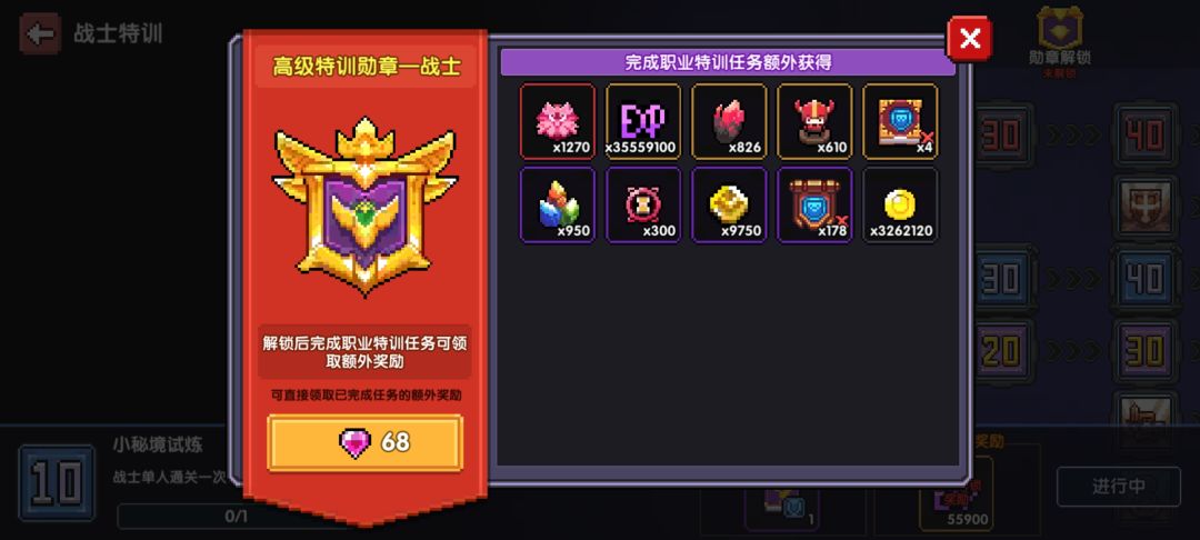 68元6800砖石懂得都懂,通硬货。比月卡值多了,现在120小秘境也很容易。微氪必买。但是整体不如第一个职业的职业特训好。