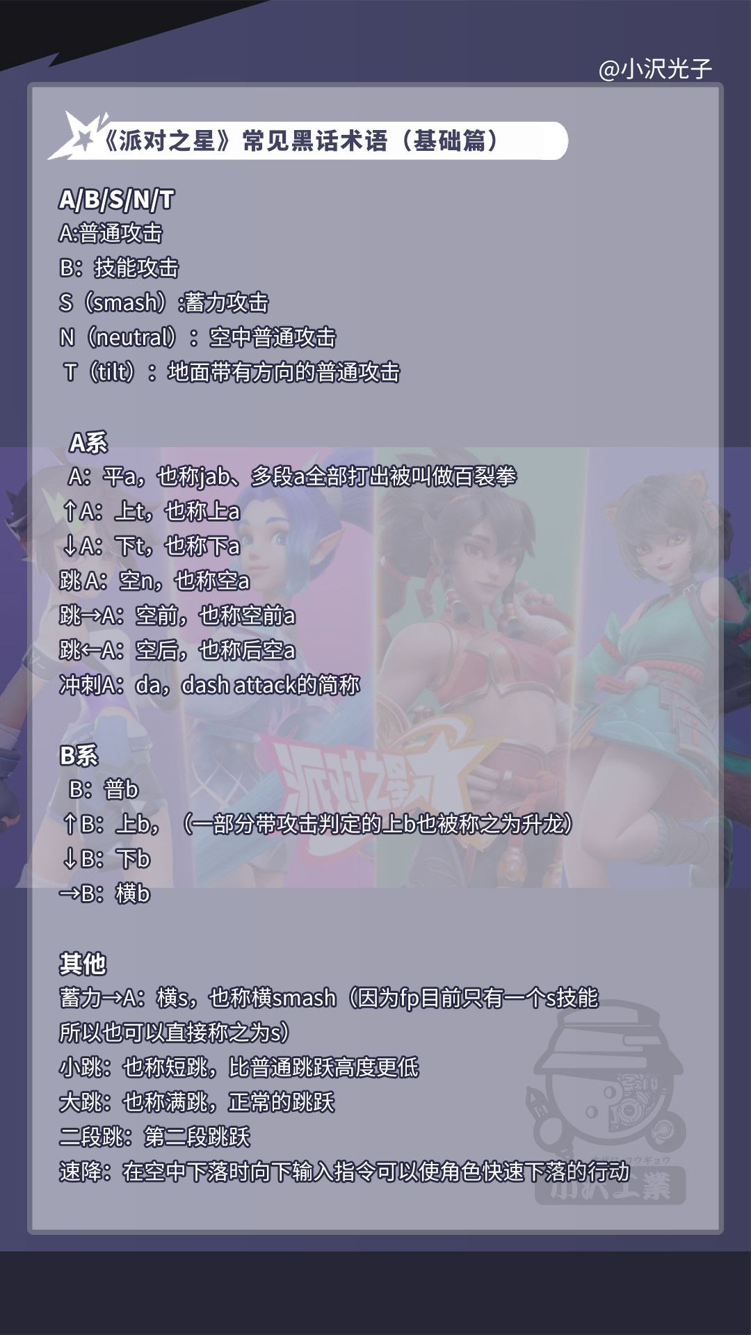 接下来在给大家分享两张小沢光子老师做的格斗术语图。(顺便宣传一下小沢光子老师是任斗大佬,最近晚上都会在b站直播派对之星,直接在b站搜索小沢(ze第2声)光子就可以找到啦,粉丝群:195860057)