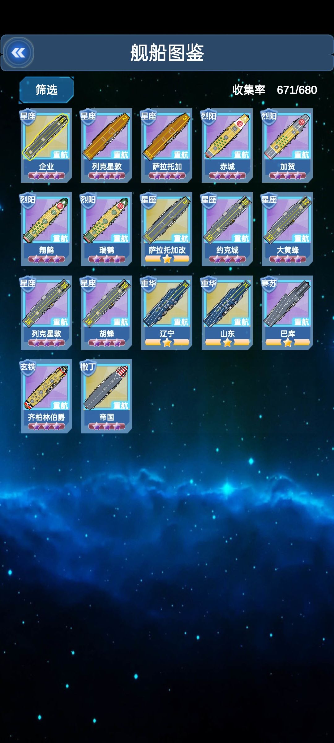 4.中后期(6-1)练啥好,细心的同胞大概发现了,游戏里船有很多品种,不只有前面推荐的潜艇重炮战列要赛,因为除了驱逐大部分船才开始发力(驱逐真废物狗都不用就此一笔带过)首先就是重潜,6-1开始反潜就可始多了,输出再给力生存不够也无力回天了,航母,航母6-1有大型航母图纸后就可以传承重型航母了,重航正是航母发力之时,先前的正航贫弱不堪,只有奉天威海勉强可以看,航母推荐辽宁,山东,帝国三条线,辽山拥有最优秀的航母装备和不错的装备位置只要玩航母就是必传的,帝国则是最优秀的装备位置但自身的装备非常逊,其余航母看情况吧