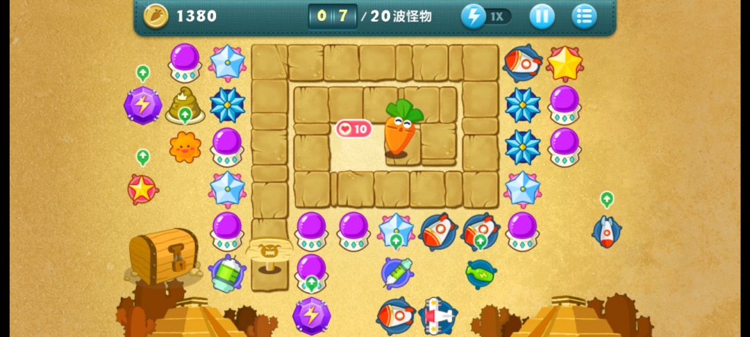 后面火箭升顶级了,前面毒针清道具清宝箱,以电蘑菇为主打怪,边边角角的四个冰星都要升满级,冰霜全部升满级。