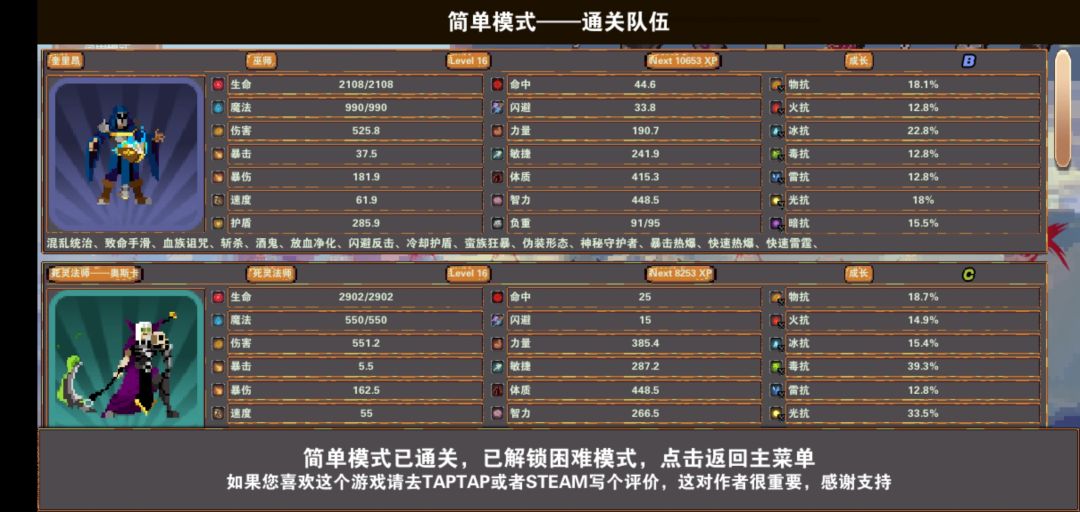 通关了,这游戏太肝了,被动技能跟攻击属性一样太重要,玩了快50个小时,终于通关了