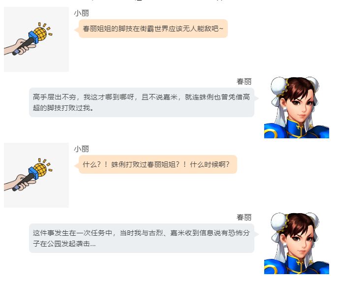 据说嘉米姐姐也曾与蛛俐战斗过,小丽下次可以再问问她蛛俐的故事~关注《街霸:对决》,更多精彩人物故事,都能在这看到哦~
