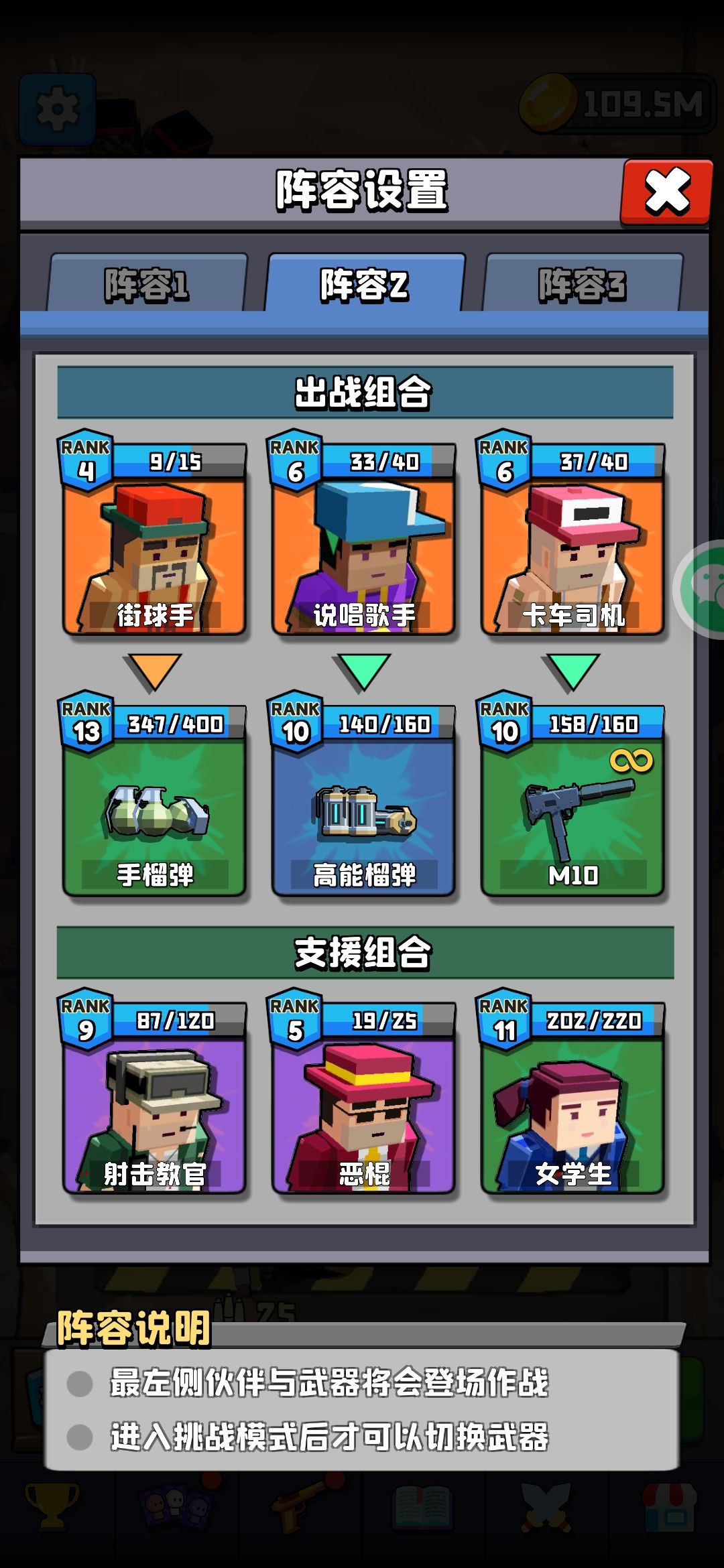 这关难度在于有3小关,第二关和第三关小怪输出快,伤害高,而最后的三个boss血太多,所以这里放弃增加弹药改为增伤人物,再利用m10增加输出过关。下面是演示视频。