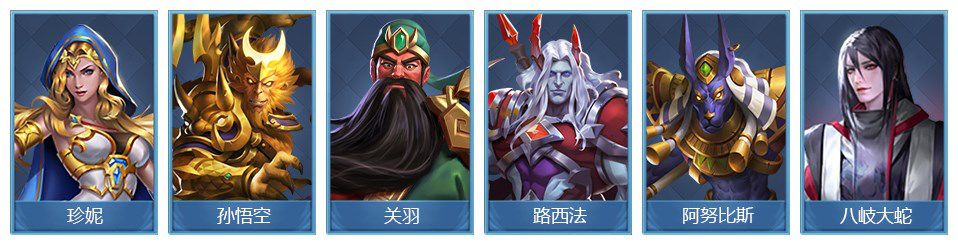 4)回血英雄建议珍妮、阿努比斯;控制英雄建议格里、山德鲁、妮菲塔丽、帕里斯、波塞冬;输出英雄建议路西法、大宝、八岐大蛇、哪吒、关羽、宙斯。