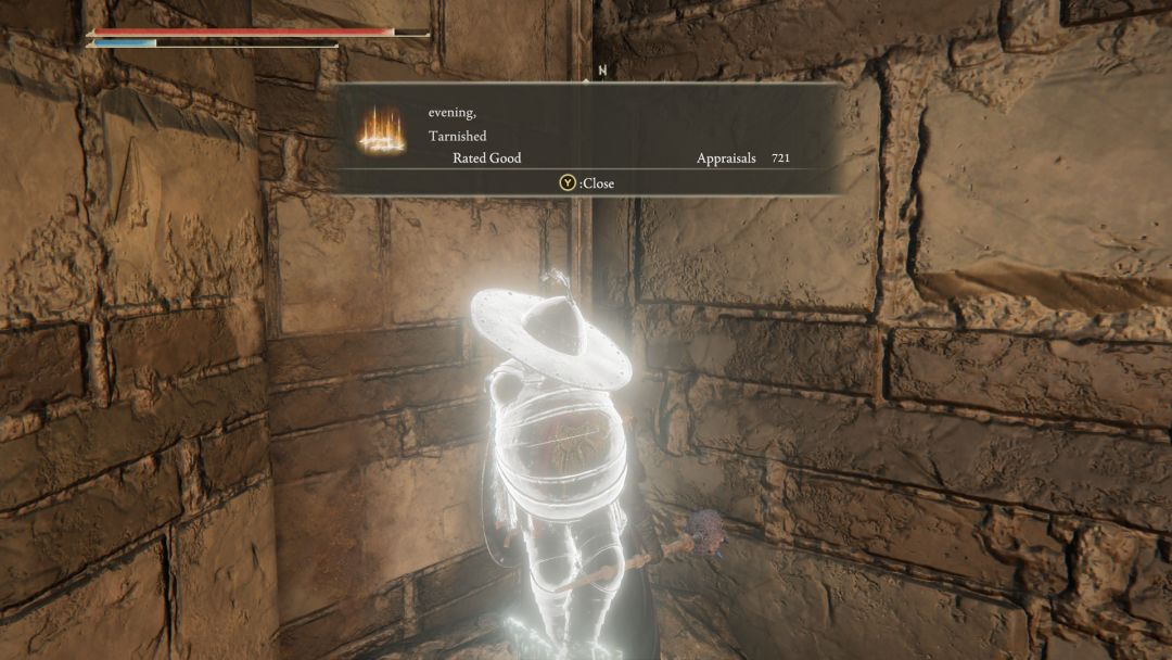 《艾尔登法环》里的每条讯息都有成为游戏内置小教程的潜力。不知道该怎么玩了?要什么网上搜索,看看周围有没有讯息就行。举个例子,利耶尼亚的「改宗塔」里有一尊塑像,身前有一则官方讯息,告诉玩家,若想打开一旁的魔法门,就得摆出名为「深具睿智」的肢体动作。玩家照做之后,发现啥事也没发生,自然一头雾水。还好一旁有好心人留言「接下来头很有用」,还贴心地示范了一下「深具睿智」的正确打开方式。只见留言者的灵体形象缓缓浮现,脑袋上还戴了个辉石头罩。那些去过「雷亚卢卡利亚学院」的玩家大概率就能悟到讯息中的「头」就是指学院法师掉落的头罩,进而推导出此处谜题的解法:戴着辉石头罩摆「深具睿智」的动作。