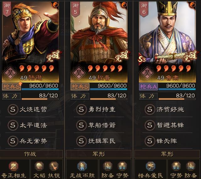 总结:只能说吴枪这个队伍在拥有足够红度的情况下,建议还是直接顶配拉满,不用考虑让战法的情况,这个队伍真的是少1-2个战法强度就下降一个档次的,尤其是陆逊作为核心大哥级输出武将,在当前环境里太尉盾满大街的情况下,当锋摧决是最为核心的战法之一,更是不要随便让出去,唯一让出的理由是不玩吴枪或者吴枪是白板,其他队伍是高红才考虑那样去组!