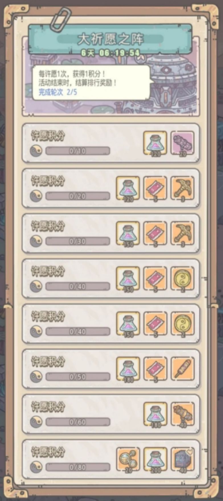 如果要冲击灰烬4档,80+4(活动积分获取)+40+4(活动积分获取)+6(灰烬白嫖获取)+9(白蝌蚪白嫖礼包)+37=180,因为积分奖励撒币40次才有许愿币获取,为了灰烬4档,第三轮根本没必要到40次,也就拿不到多的许愿币了。算下来就是个157许愿币(天啦!再次感到丧心病狂!)