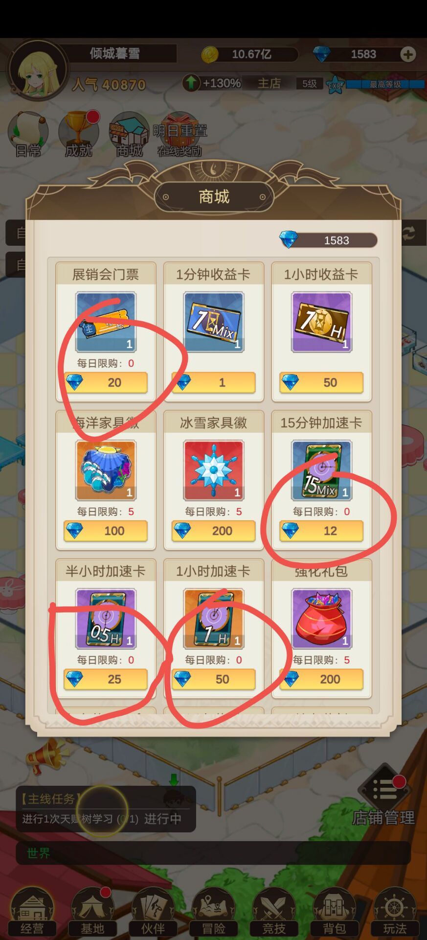 第三步以上挂机收经验,能升到3级,3级开启冒险打打关卡也获得经验,现在有了红装备和伙伴不知道能不能升到4级,我当初玩的时候没有这些我现在也不知道能不能升到4级,目前经验获得方法有,经验,冒险,发展会,这里要强调一下发展会很重要的能获得大量经验和升级客人羁绊等级,还有家具卷,客人羁绊等级可以加伙伴战力的,发展会门票前期劲量不要用先攒一些,先升发展会4星需要的料理升到5级在用,还有一点要注意的,商场每天都要买的几个东西,发展会卷,加速卡,注意收益卡不要买,没什么用。