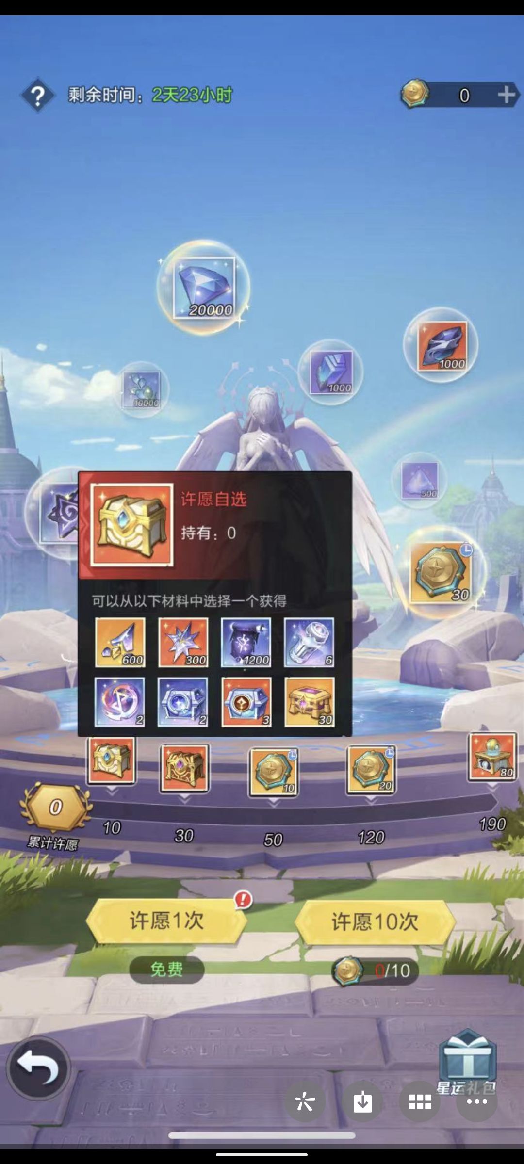 同时白给一个材料自选箱,推荐选1200真知残卷稀有度,且价值最高,超值卖19200钻石