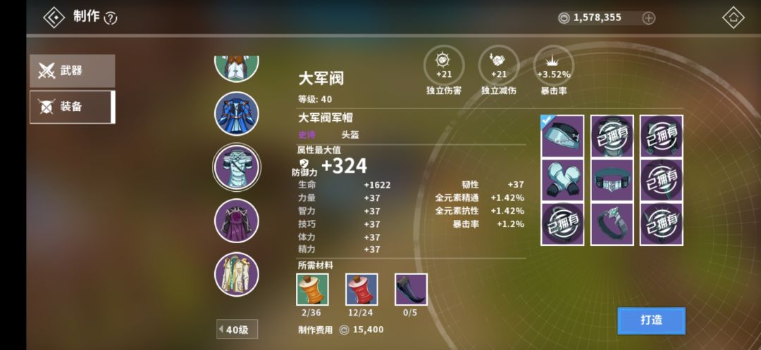 如果喜欢“独行侠”,或者想要“自力更生”,又或者没有大佬每天帮你,可以做一套40级装备,推荐大军阀套装,属性还可以。后面也要转60级装备。