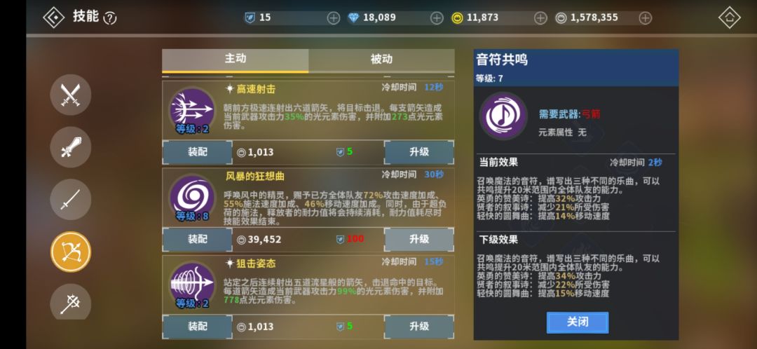 武器装备为弓箭(没有装备要求,10银币的新手弓也行),装备两个技能:风暴的狂想曲+音符共鸣,两个都是团队增益效果,对组队和匹配的友军都有效。