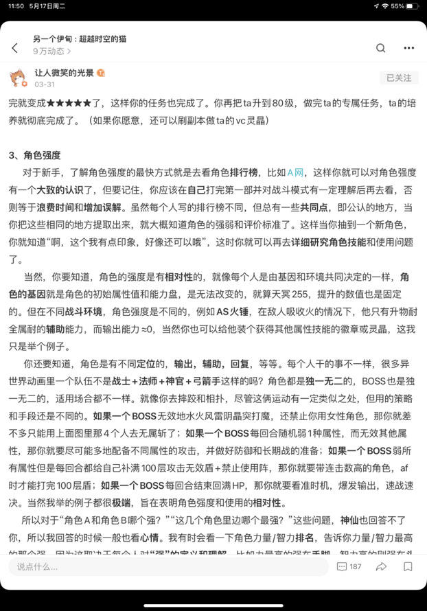 因此而询问,如光景大佬所说“找到角色认知的共同点”。并没有拉踩的意思。