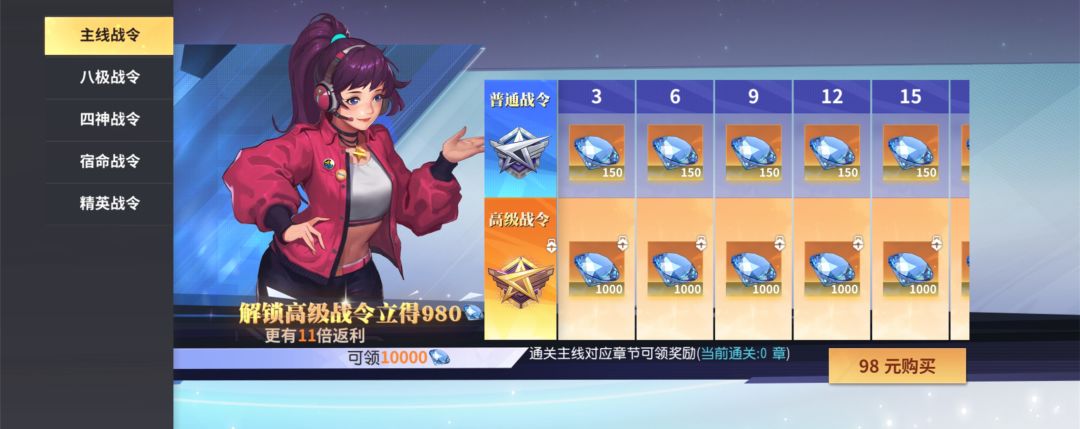 4.战令,五个战令都是长线的阶段式战令,进度全都完成后可以获得5w钻,在可以作为成长期间稳定的钻石补充来源