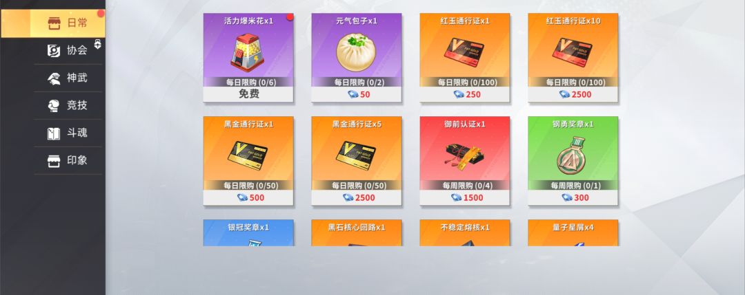 红玉通行证 250钻/个 (前期不建议大量消费钻石购买通行证,因为活动比较多,可以等到新手活动都做完没有奖励之后再购买)