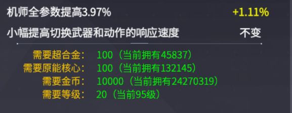 宠物详情:机师全参数提高15%,小幅提高切换武器和动作的相应速度。