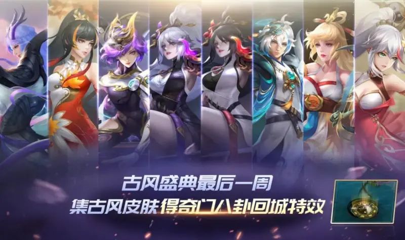 4月27日-5月24日,收集指定古风皮肤可得全新奇门八卦回城特效、古风盛典卡面边框、14天妖世录·娜塔莎战场播报。