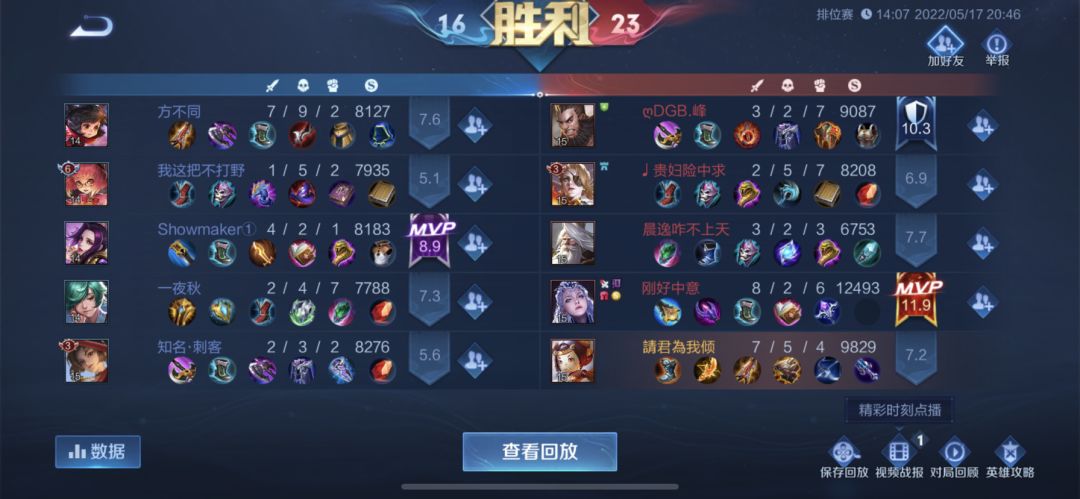 今晚打了两把排位,第一把随便玩就赢了,露娜大神带飞!