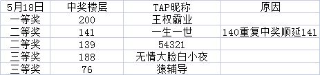 7:抽奖过程中出现重复或者相同数楼层,则会相应向下移动一个顺位。举例: