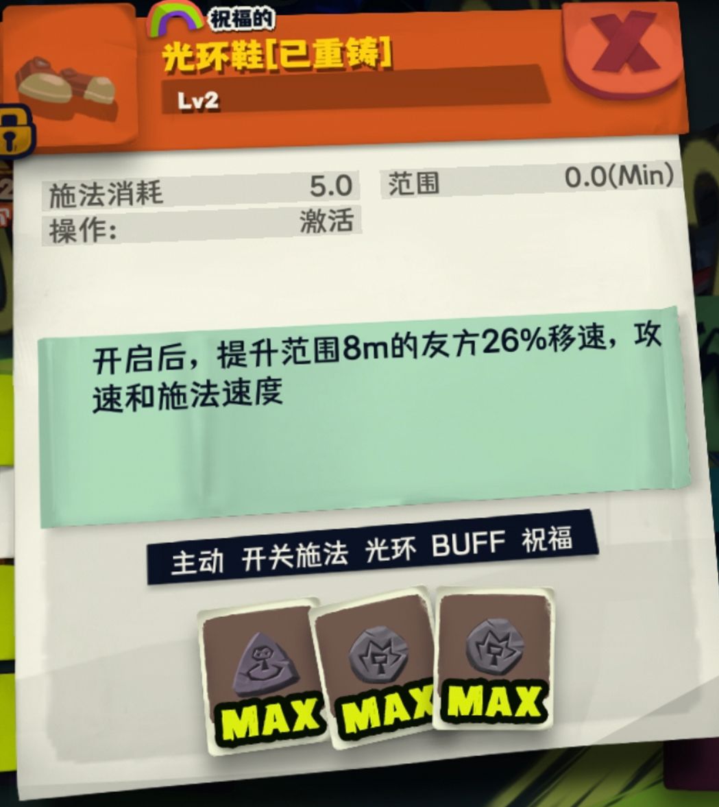 光环鞋符文 : 自光环*1、buff效果提升*2