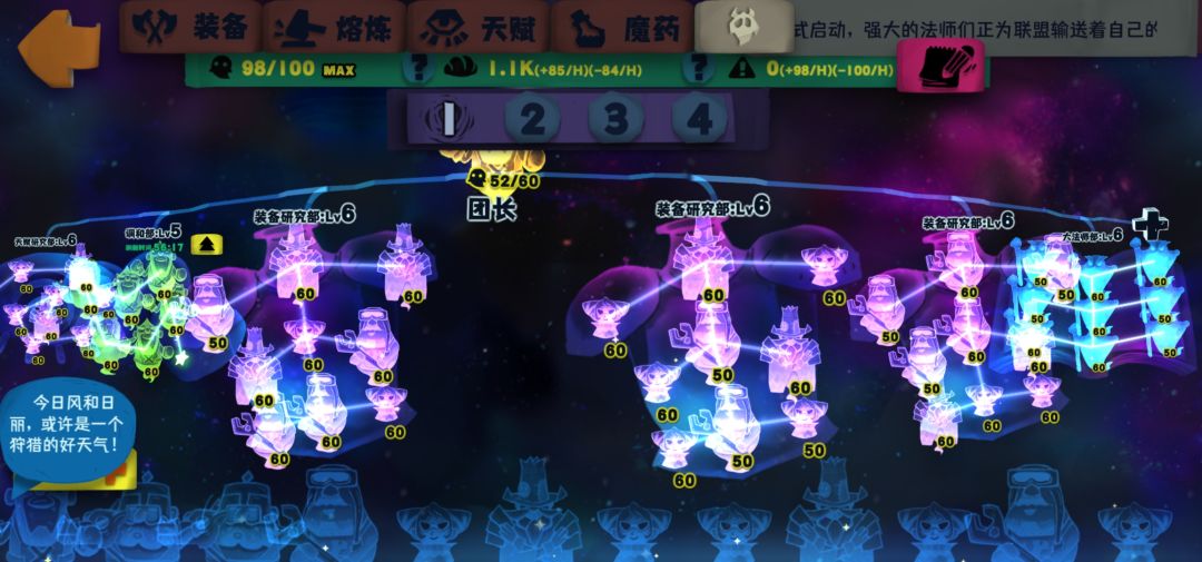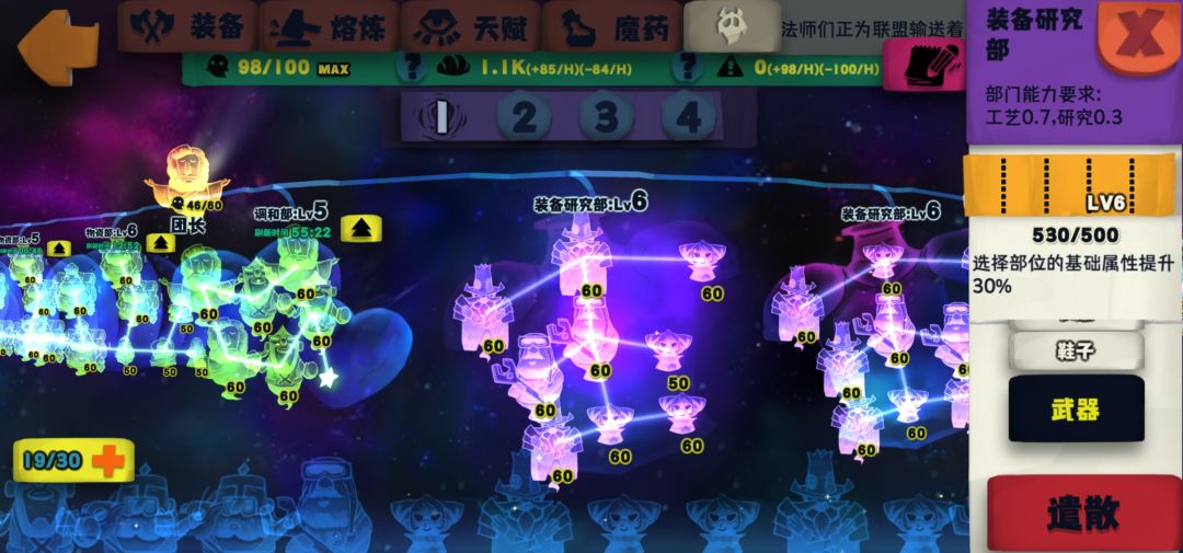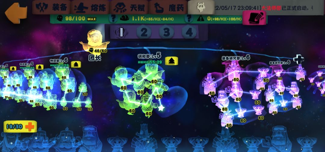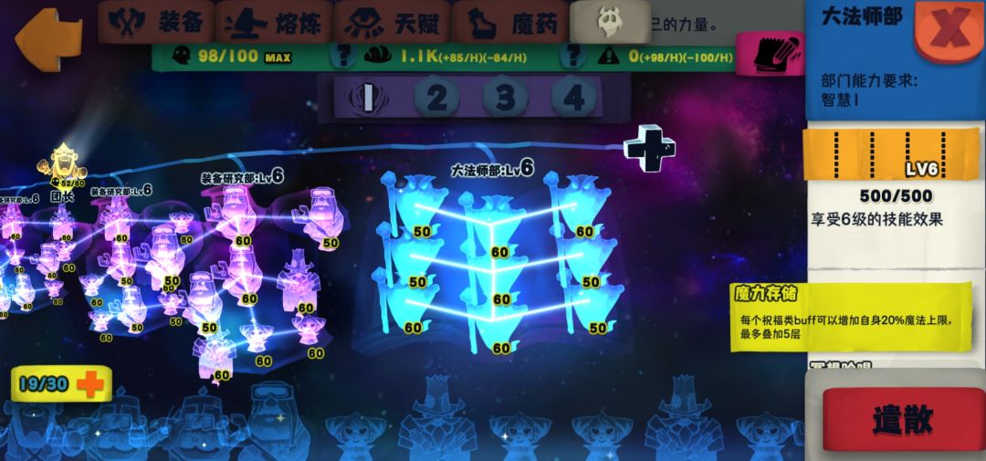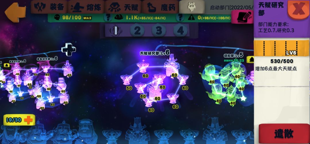 总和12个部门,幽灵消耗 : 98,物资收益/消耗 : 85/84,矛盾量:98/100