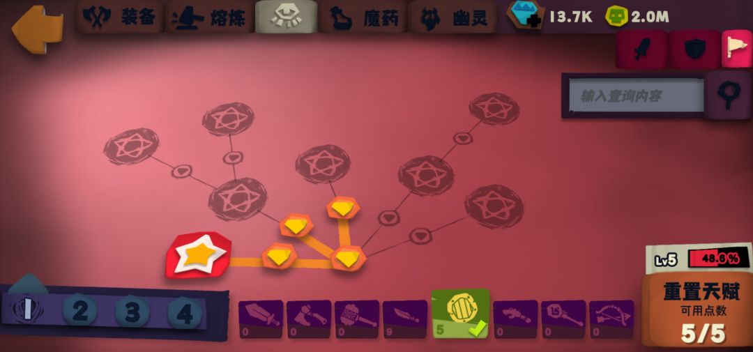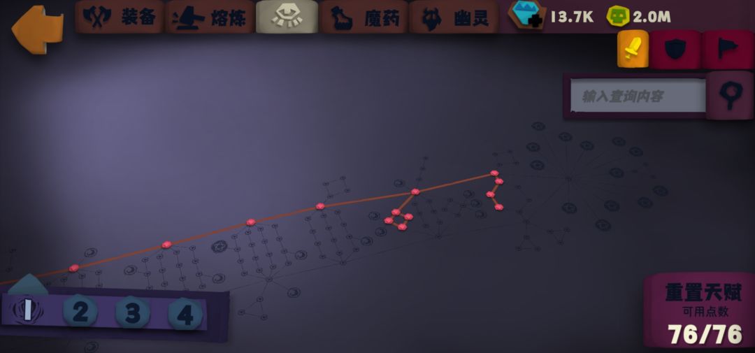 天赋部 : 这里就是我上面说的为什么会有76点天赋点的原因,就在这个部门,技能里有介绍增加最大天赋点(这个部门其实是盾救赎挺需要的,收益会比一个装备部多!所以最好就是做一个)