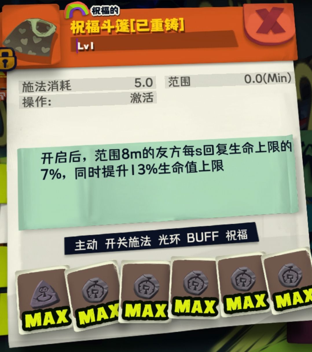 披风符文 : 自光环*1、buff间隔*5 (这里我给你们解释下为啥我上面说了6孔不是必须品只是相对来说的最优品,原因是因为间隔频率是有上限的,再高也不会突破那个点,所以当你只有5孔披风的时候,不要气馁,点击天赋拉到红色爆伤前面的buff区,或者搜索间隔,你就能看到一个间隔的天赋,把他点满,你5孔披风也能顶6孔频率了!以后谁在说没有6孔披风就没法玩救赎的话,你就当他是傻狍子不要理他)!