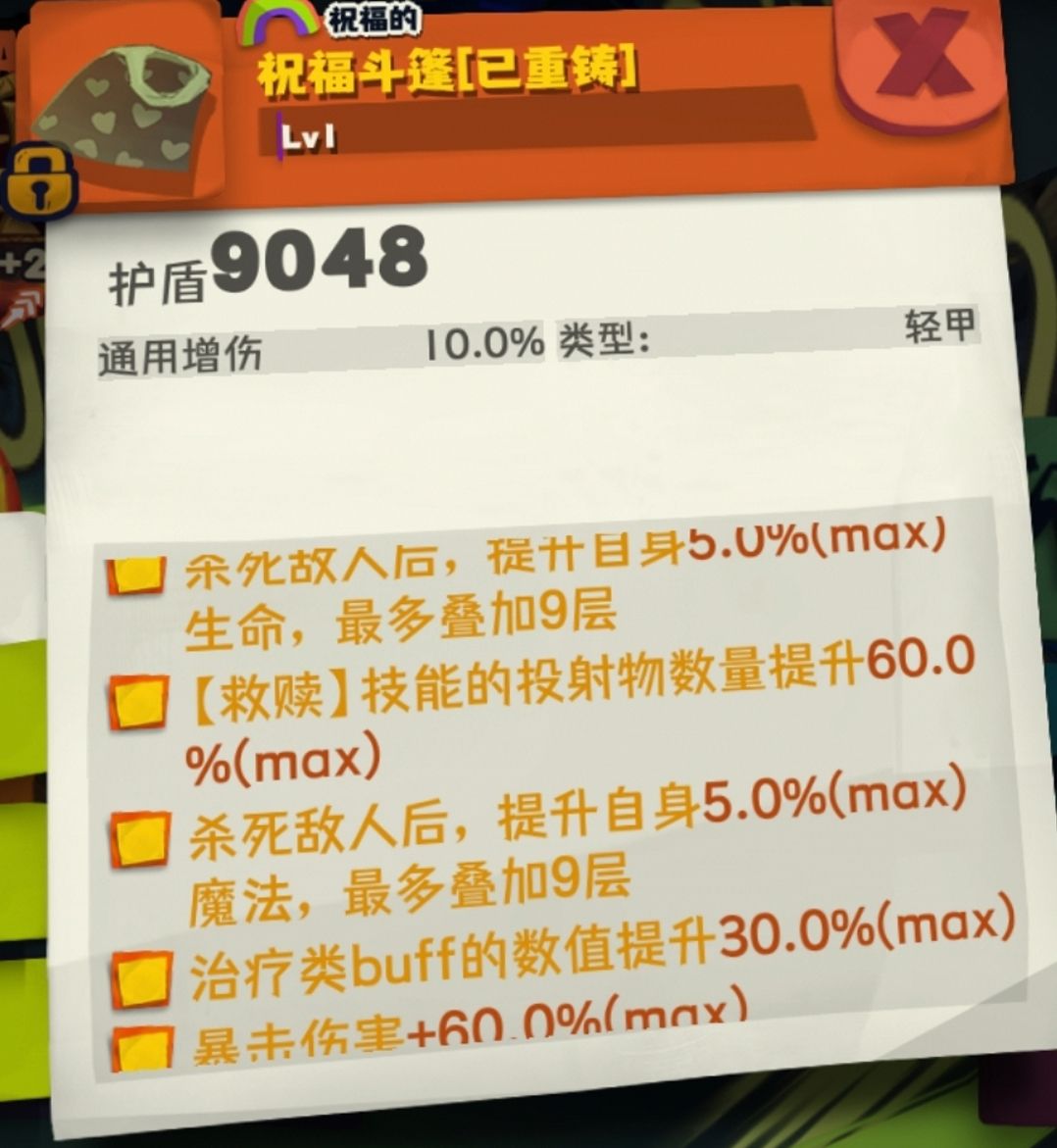 祝福披风 : 盾救赎bd的核心装备,当然还有其他救赎流派可以不用祝福披风的,这里我就不介绍了,有缘再出其他类型救赎的攻略,有缘再说!技能介绍上是为友方回复生命,这里就要把友方改为自身,所以就要用上 自光环 符文!注意 回复 这里的回复就是可以触发救赎头的技能打出伤害的,所以这披风属于核心装备之一。