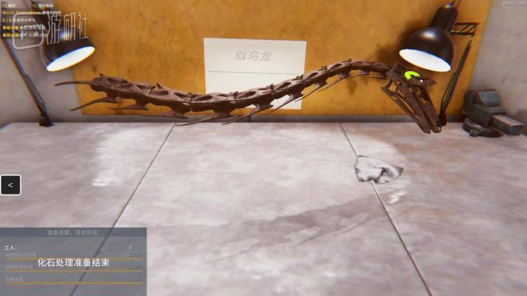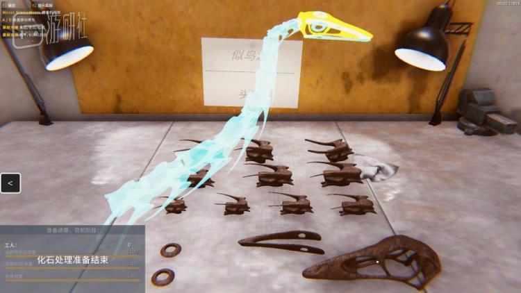准备后续处理的恐龙骨骼,也许很长时间不会有人来研究当化石运送到室内,真正的清理工作随之开展。这可能是游戏的重中之重。你需要先切开石膏,给化石初步的清扫,随后如果亲自动手,将会有酸剂软化、清除沉积物、清洗、拼接和装架的工作。当然这些步骤完全可以交给工作人员,只需要最后的装卸即可。游戏中,这应该是最接近辨认化石的部分,如果做的足够精细,是完全可以做一个教学类程序的。