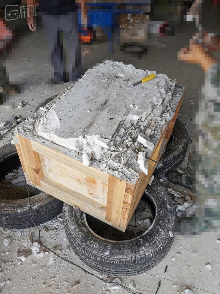 石膏的拆卸工作,非常耗费体力和耐心好不容易锯开以后,工人会教我在化石的表面喷上一层清漆,作用是为了对化石和围岩进行加固。而在拆卸过程中受损的化石,如果破碎面比较小,用502简单涂抹粘合即可。如果是大的断面,则需要用到粘合剂和固化剂。整个过程像是泥瓦匠在砌墙。这个过程中产生的味道真的会造成一些不适。