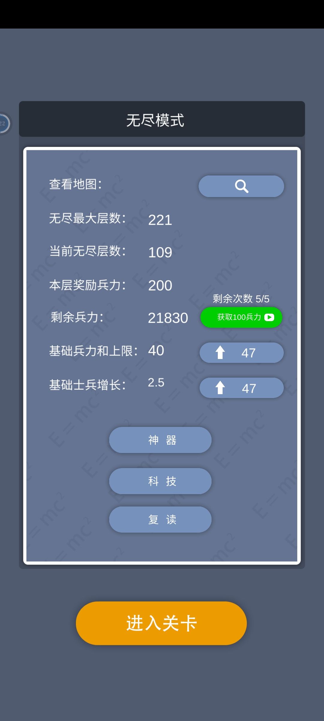 图234:带上4个9级橡皮檫复读 可以直接跳过109关