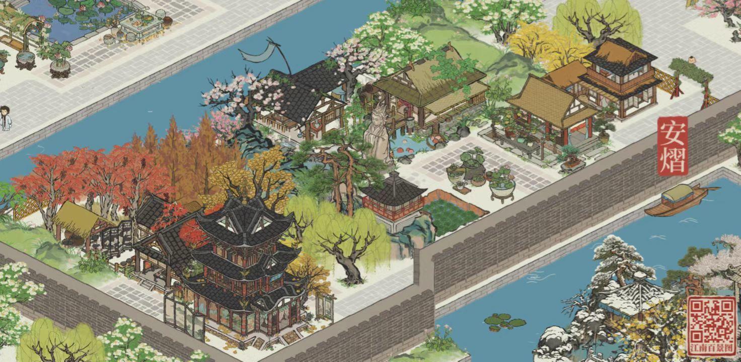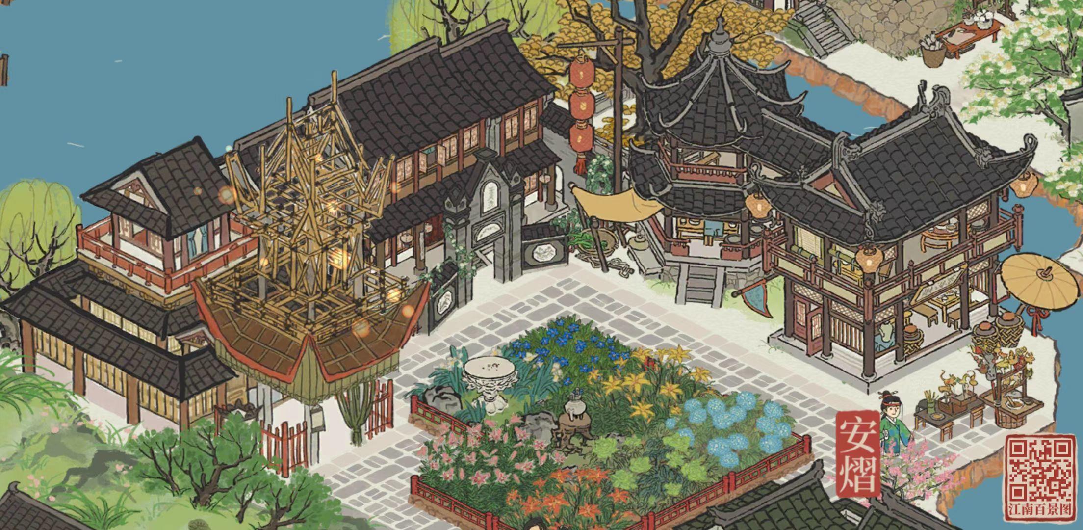 从开徽州地时就有想在游戏里建造大观园的想法,起因一是自我感觉徽商模式微缩了明清商人和小说里薛蟠、贾琏等人的外出活动,二是之前出的建筑月老祠颇有红香绿玉的味道——混合了略带暧昧的飘花动态以及情思昏昏的氛围。