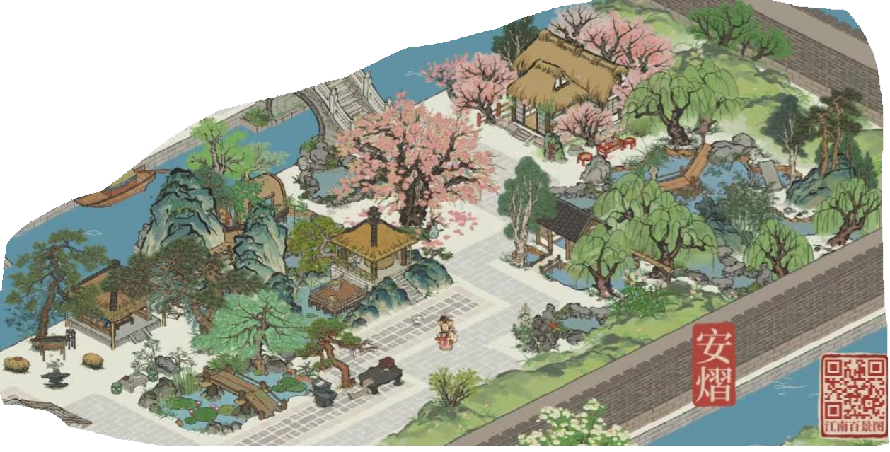 为了确保每块景的独特性,用过的主体建筑会尽量不再重复用,同时为保证整体贴合园林质感,不过于狭窄,也尽量用植物和路径划区而不用墙体。至于不用民宅做主体,一是想让每部分保持独特,二是诺大一个园子,集在册上,就成了薄命司,俗世的东西尽量还是能避就避。