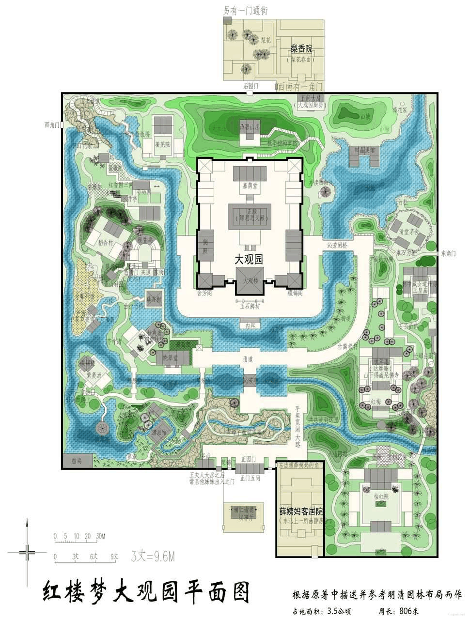 然而仔细琢磨才发现苏州有一无法克服的问题:即使现在扩城了,地盘依旧小,这个小并不在于狗啃地导致的利用率低,而是无论参考哪一版大观园图纸,因为苏州设置的城里区域和当地两个特产建筑的位置,布置逻辑都不好推。