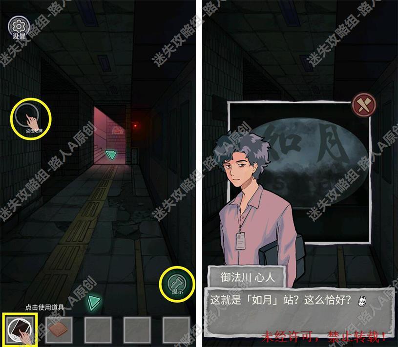 1. 按照教程,点击【站牌】,点击【提示】,然后用【手机】照亮站牌。1.1