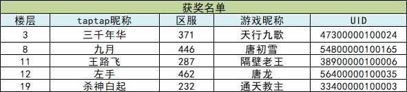 恭喜楼层分别为3、8、11、12、19的5位玩家获得本次的活动奖励。请5位获奖玩家联系客服QQ:800183610,通过认证后,提供详细的收货地址呦~~