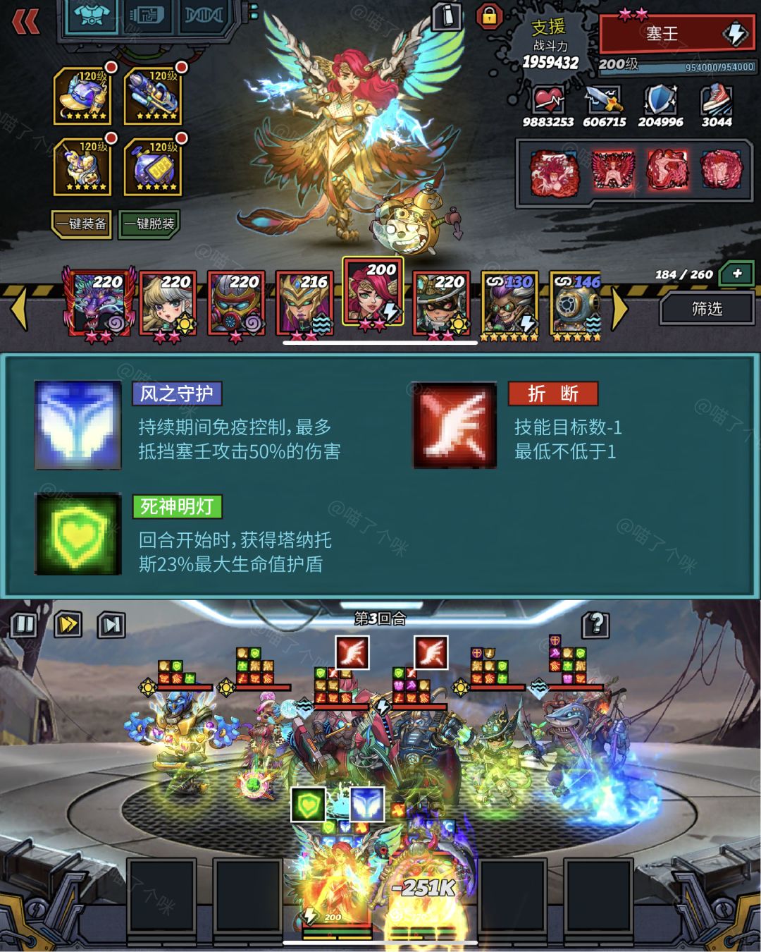 当塞壬速度慢于塔纳托斯时,【死神明灯】先结算,可以保护【风之守护】。