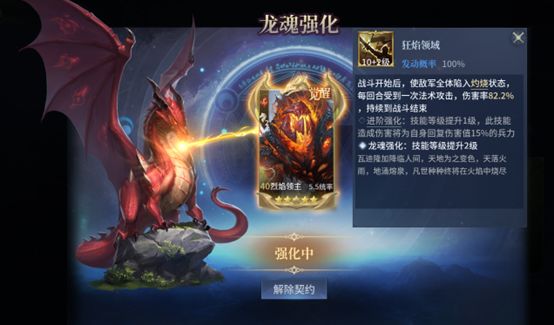 龙魂强化:强化英雄的天生技能等级,提高英雄的作战能力!