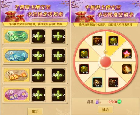 1.选择物品界面分为四个奖池,每个奖池中道具最多选择两个,道具不可重复选择;