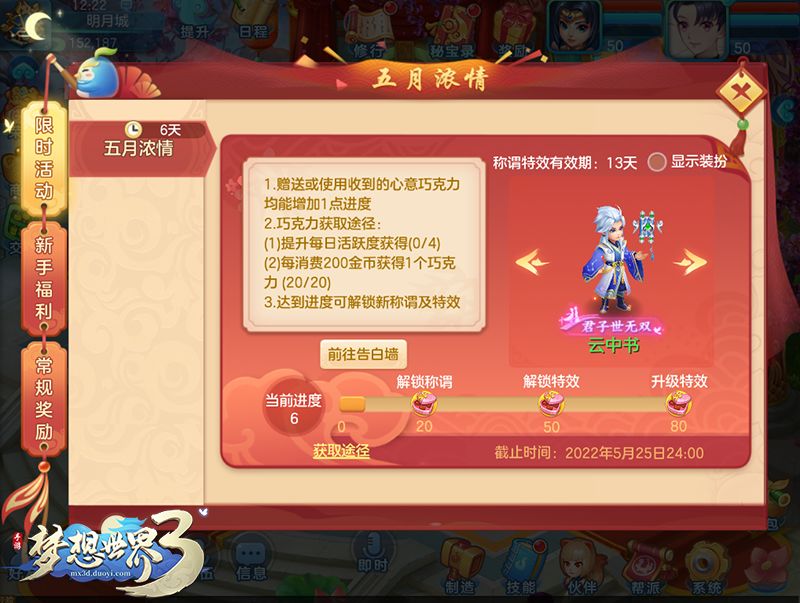 【更新公告】五月浓情限时开启,领域、门派妙药调整-《梦想世界3》手游