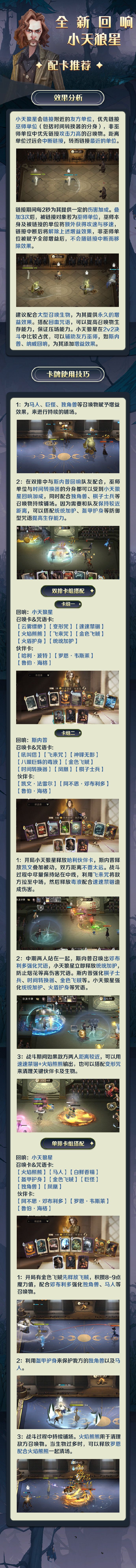 小天回响总体而言更适合2v2决斗一点,和斯内普、纳威配合收益会比较大。卡组搭配灵活多变,为队友提供增益的同时,召唤物铺场和咒语解场两不误。