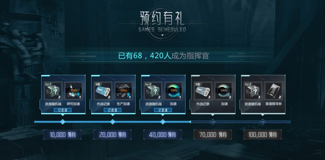 达成7万预约,解锁奖励:3级作战记录*3、10分钟加速*3;