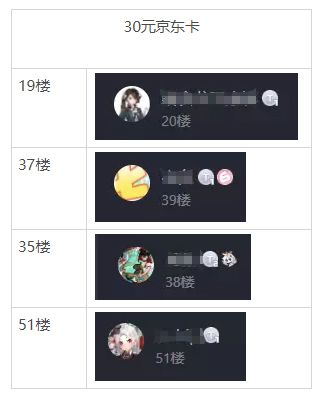 19楼、35楼、37楼的小伙伴没有发对应的活动截图,因此顺延到下一层活动楼层,恭喜20楼、38楼、39楼玩家获得【30元京东卡】哦!!!