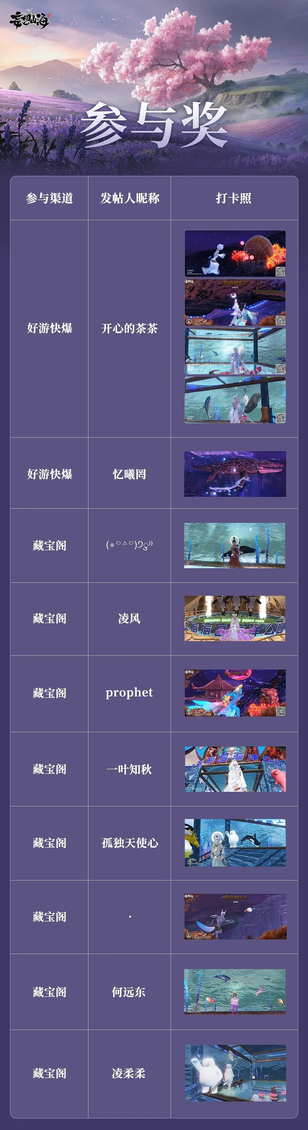 老规矩,就让我们一起来看看有哪些旅者拿到本次【探秘北冥 打卡海昌】活动的奖励吧!