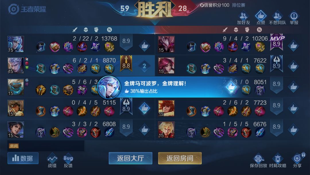 输出占比、承伤占比、伤害转化率、MVP、金牌、五连绝世、四连超凡、单杀次数、极限翻盘等——多角度展示,全方位围观!