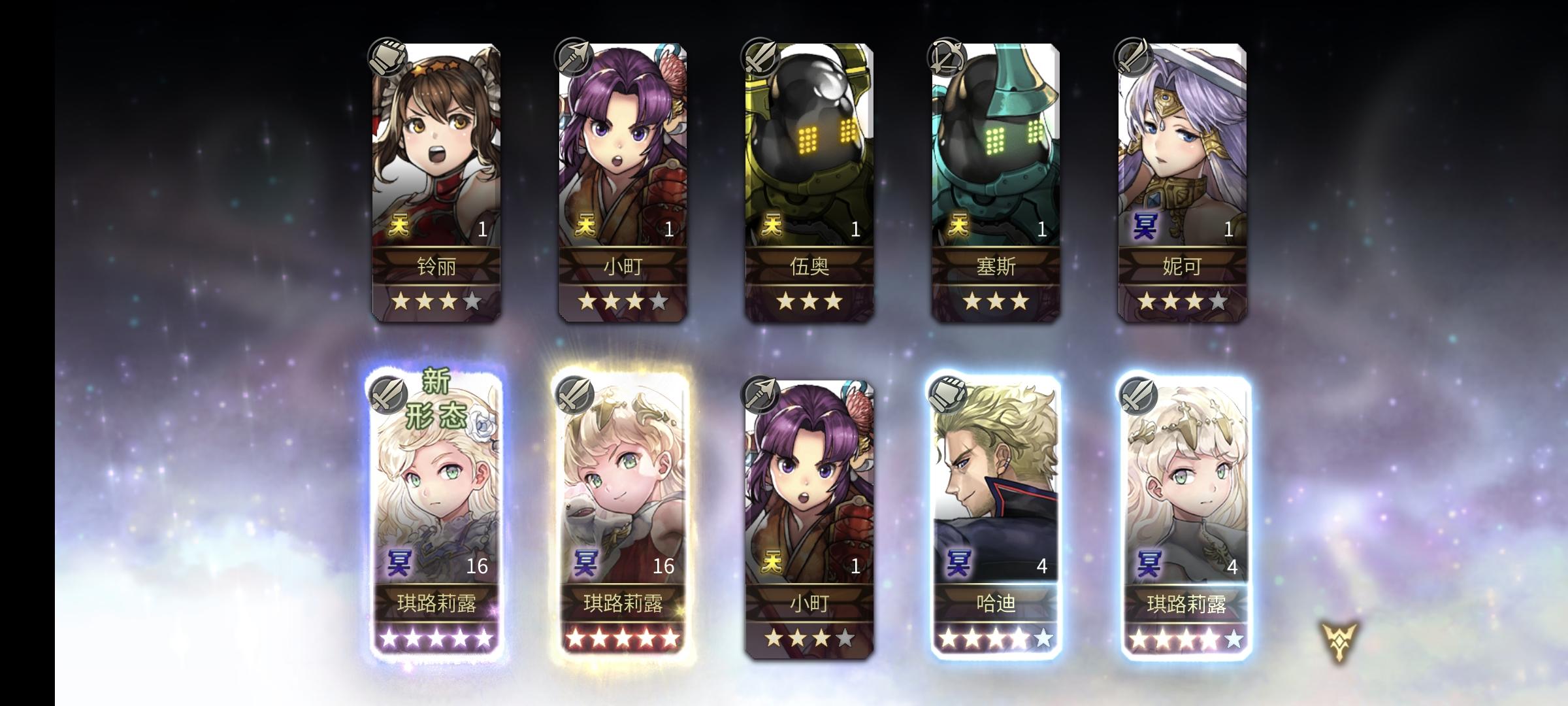 我应该是你游开服玩家中最后一个过双子的,懒癌玩家,今朝剑斩前朝官。MLS第一天就抽出来了至今个人任务还没做😌顺便晒次抽卡,我开服以来最欧的一次,当年8000左右抽芙兰,7616池子就一个4.5火锅,后来自选了7616.,这次一下子出了一窝