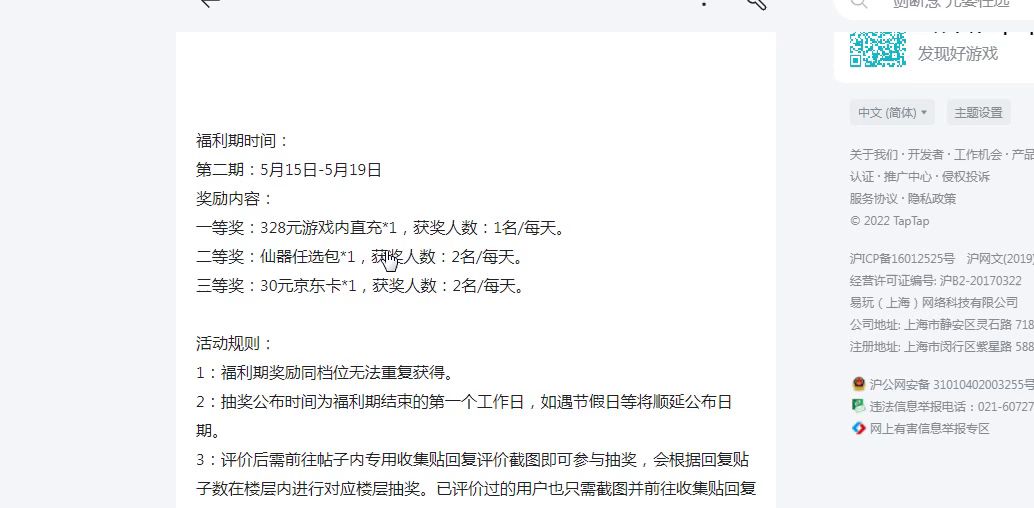 参与方式:5月19日22:00前发表任意内容评价,无需包含区服、角色名等内容,可以发表游戏建议、BUG反馈、未来游戏希望出现的功能等各类内容。完成评价后,只需要使用已发表的评价截图前往专用收集贴回复帖子即认为参加抽奖。已评价过的用户也只需截图并前往收集贴回复即可。