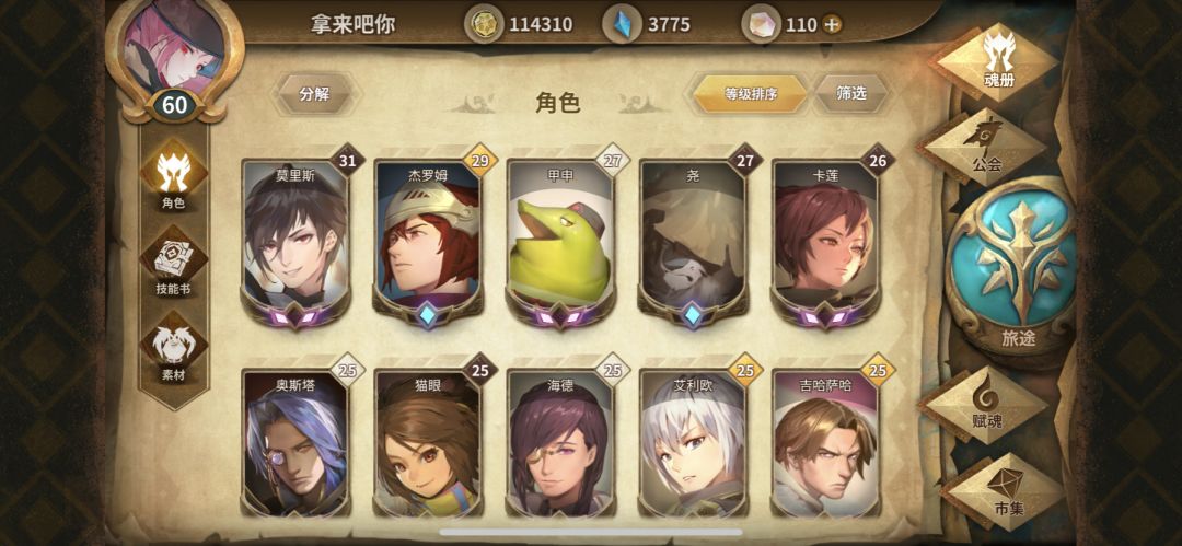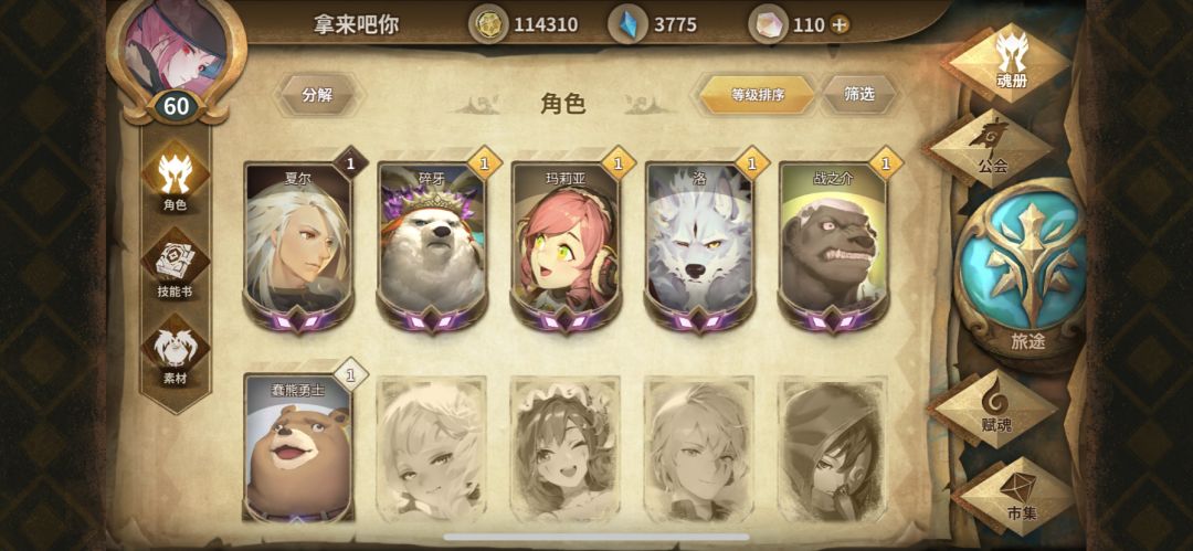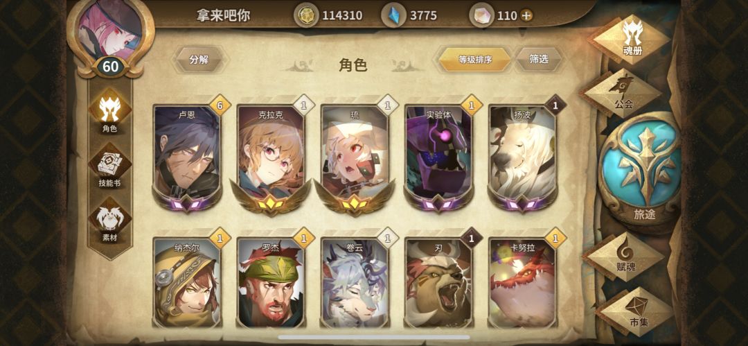 2.给谁刷碎片?想给罗杰刷,但是看到尧已经+7了,犹豫要不先给尧升个技能?(没猜错的话应该是升1魂技能吧?)……是先培养罗杰还是给尧升技能啊……纠结