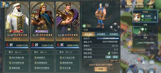 s3推荐开荒队伍阵容技能搭配:(萨拉丁主将,副将凯撒,君士坦丁)