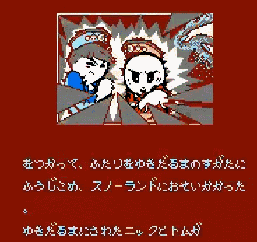 在街机版上市不到一年,《雪人兄弟》被移植到了FC上。然而剧情却惨遭修改,最后厂商自己也圆不上了。
