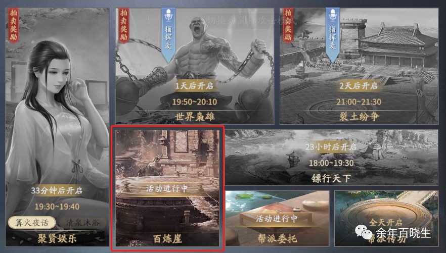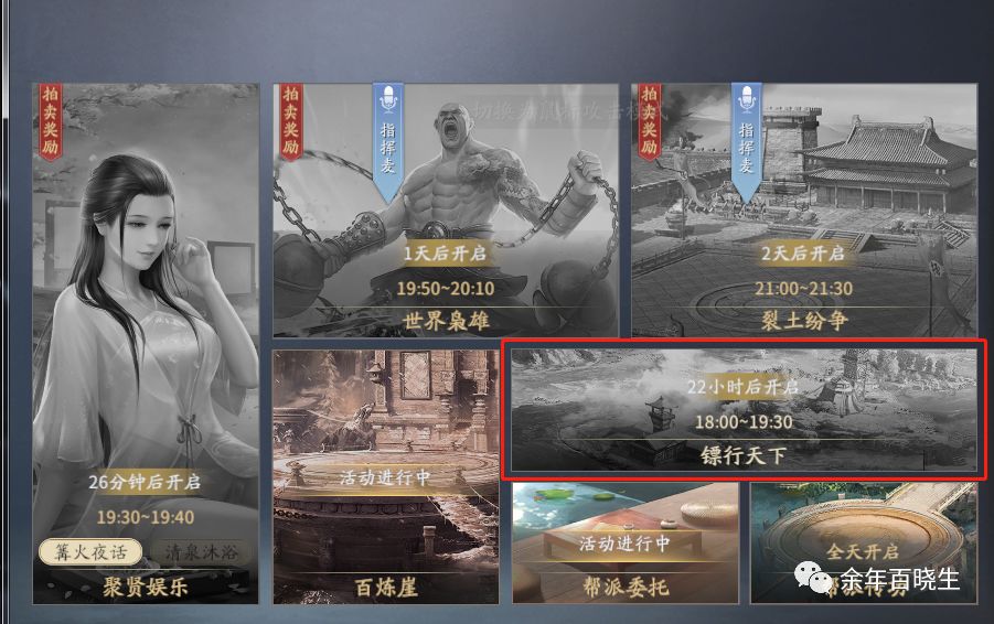 世界枭雄:每周三、周六、周天晚上7点50开始。开启后出现多个boss,有真身和假身之分,血量不一样,奖励也不一样。尽可能的听指挥去抢boss,排名前十的帮派可以获得拍卖奖励。拍卖货物有黄龙丹、紫色功法残页、金色功法残页、紫色灵宝御术、金色灵宝御灵术。能开麦听指挥的玩家个人建议当队长组好队,听从指挥的安排,不能开麦的玩家挂个跟随,积极参与活动。大型帮派可能会优先去击杀雄霸天和公孙鸿,这2个boss相对来说奖励会更好一点。再去抢其他的boss,其他帮派也可以去优先摸着2个boss百分之5的血量,然后撤退去打其他的。尽可能的多抢几个boss提高自己和帮派的收益。